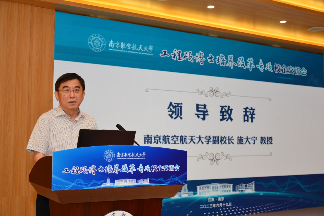 施大宁在致辞中指出,推进工程硕博士培养改革是贯彻落实习近平总书记在中央人才工作会议上的重要讲话精神的具体举措,是工程领域拔尖创新人才培养的主要路径。他表示,工程硕博士培养要聚焦国家重大战略需求和行业发展需求,重点培养“急用”、“实用”的卓越工程师;要坚持工程实践导向,突出交叉融合培养;要健全校企协同育人机制,推动有组织科研和有组织人才培养深度融合。希望校企携手奋进,共创共赢,共同推动校企协同育人工作再上新台阶,开启工程硕博士培养改革的新局面。