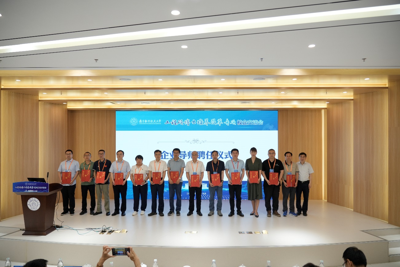 交流会现场举行了隆重的企业导师聘任仪式,施大宁为到场的13位企业导师代表颁发聘书。中国航天科工集团六院41所副总工程师李掌收研究员、中国航空发动机研究院(北京)苗辉研究员和我校电子信息工程学院朱岱寅教授分别代表企业导师和校内导师作了交流发言。
