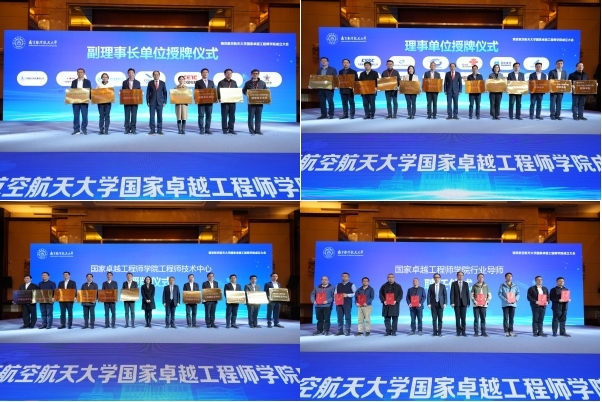 会上,单忠德分别为航天科技、航天科工、航空工业、中国商飞、中国电科、中国航发、中国融通等7家副理事长单位和中国船舶、兵器工业、兵器装备、中国联通、国机集团、南方航空、通用技术、中国中车、东方航空、潍柴控股、深圳能源、深圳汇川等12家理事单位授牌。校党委常委、组织部部长、统战部部长李遥,校党委常委、宣传部/教师工作部部长王晖共同为承担工程师技术中心任务的无人机院、公共实验教学部、航空学院、能源与动力学院、自动化学院、电子信息工程学院/集成电路学院、机电学院、材料科学与技术学院、民航学院、航天学院、计算机学院等11家工程师技术中心授牌。校长助理、党政办公室主任张启钱,校长助理、发展规划处处长徐正扬共同为行业导师颁发聘书。