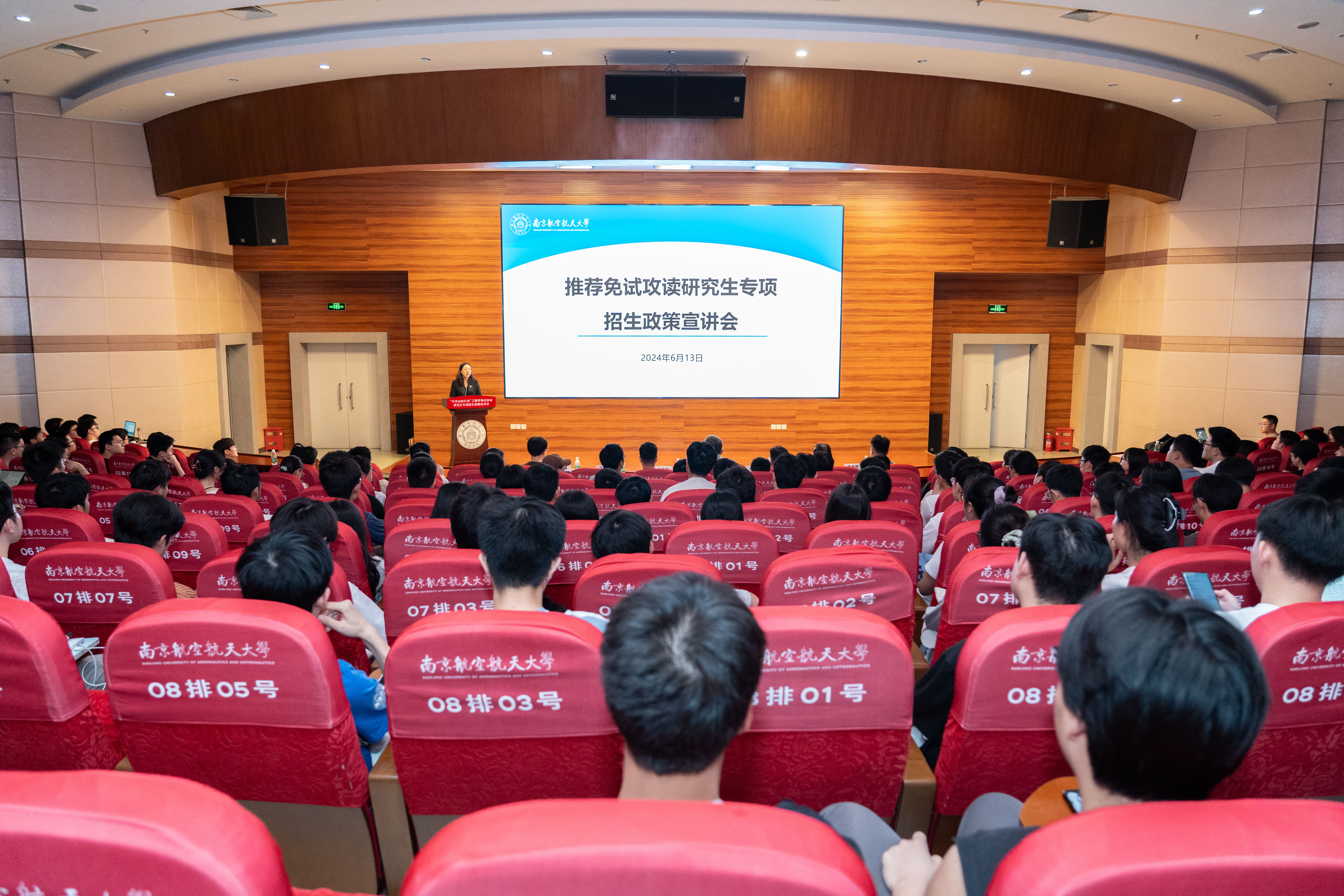 陈兵分析了国内外形势发展对高层次人才培养的迫切需求,全面介绍了学校研究生培养的历史与现状、培养体系、改革举措与成效等,重点宣讲了国家急需高层次人才培养计划(直博生)、工程硕博士培养改革专项计划、本博贯通培养计划等专项招生政策及培养特色。他勉励同学们选择南航进一步深造,通过加入专项培养计划,依托南航特色优势,真正将自己的研究面向世界科技前沿、面向国家重大需求、面向经济主战场、面向人民生命健康,做服务新质生产力发展和创造新质生产力的“新质人才”,为服务高水平科技自立自强贡献青春力量。
