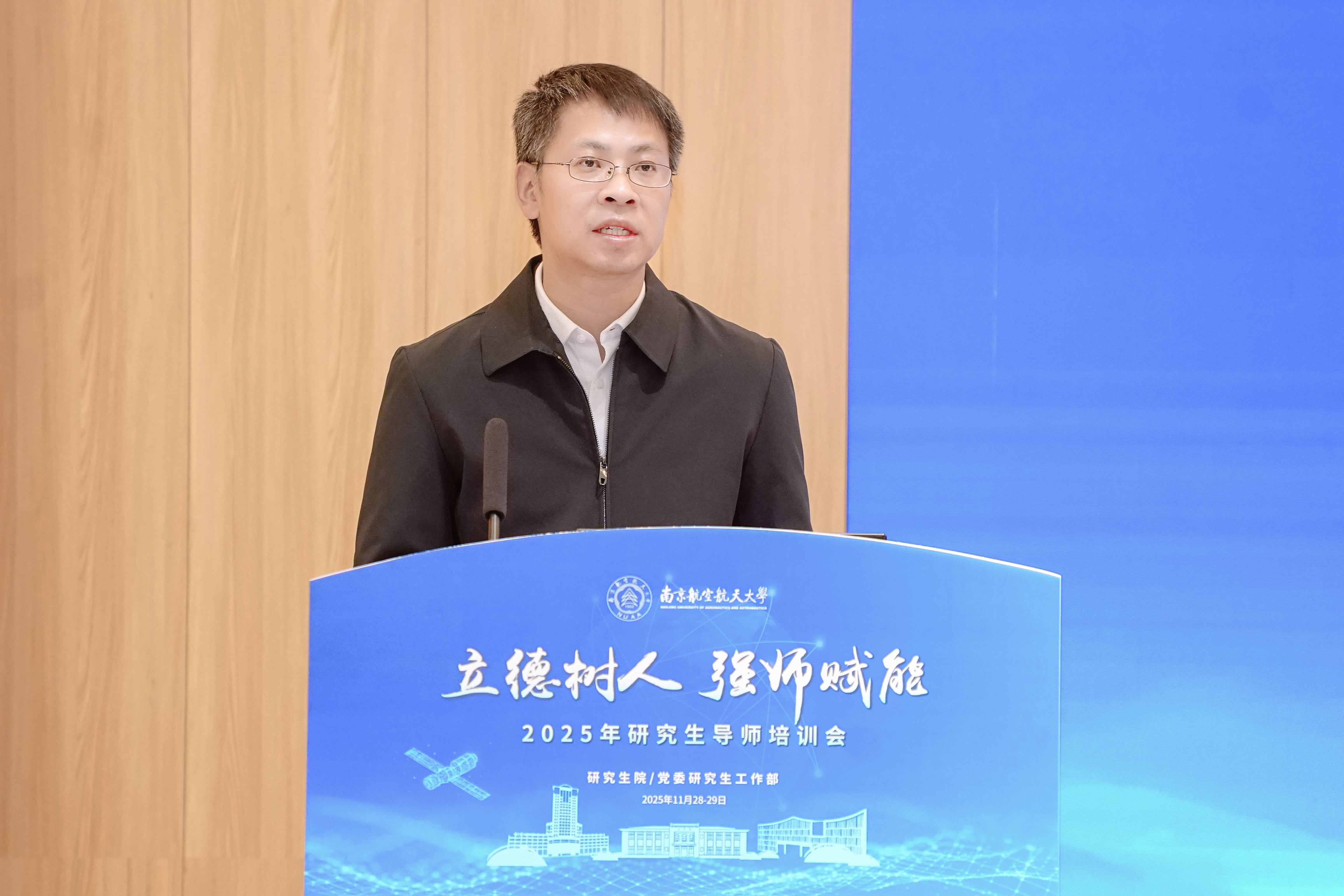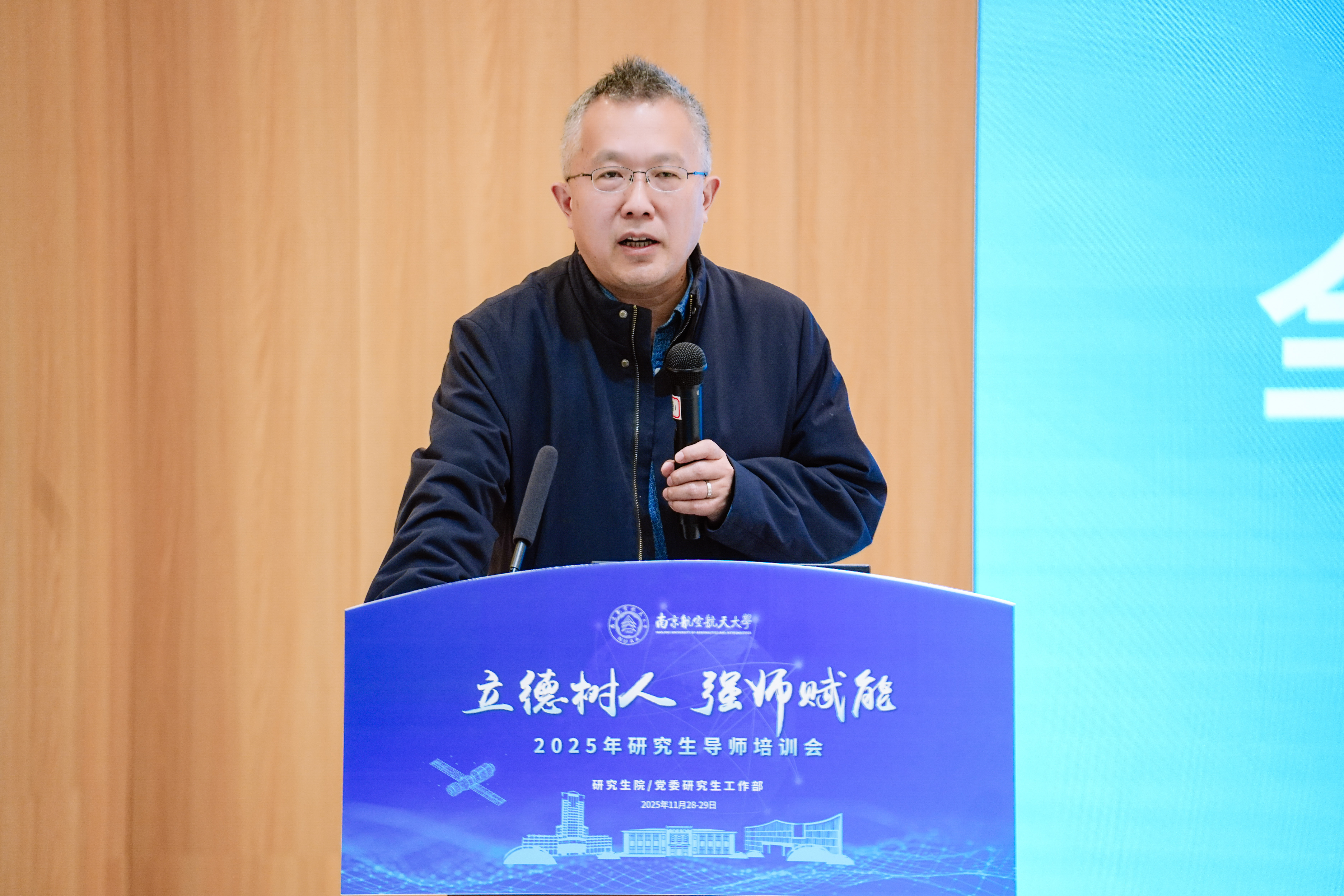 潘时龙在致辞中指出,工程硕博士培养的核心在于校企导师的深度协同,校内导师是学生理论体系的奠基者,企业导师是专业实践能力的锻造者。他强调,导师须以“为党育英才、为国铸重器”为初心使命,引导学生筑牢信仰之基,主动融入国家航空航天事业,并以“强师赋能”应对科技革命与国家战略需求,彰显新时代南航导师“铸魂强师”的责任担当。
