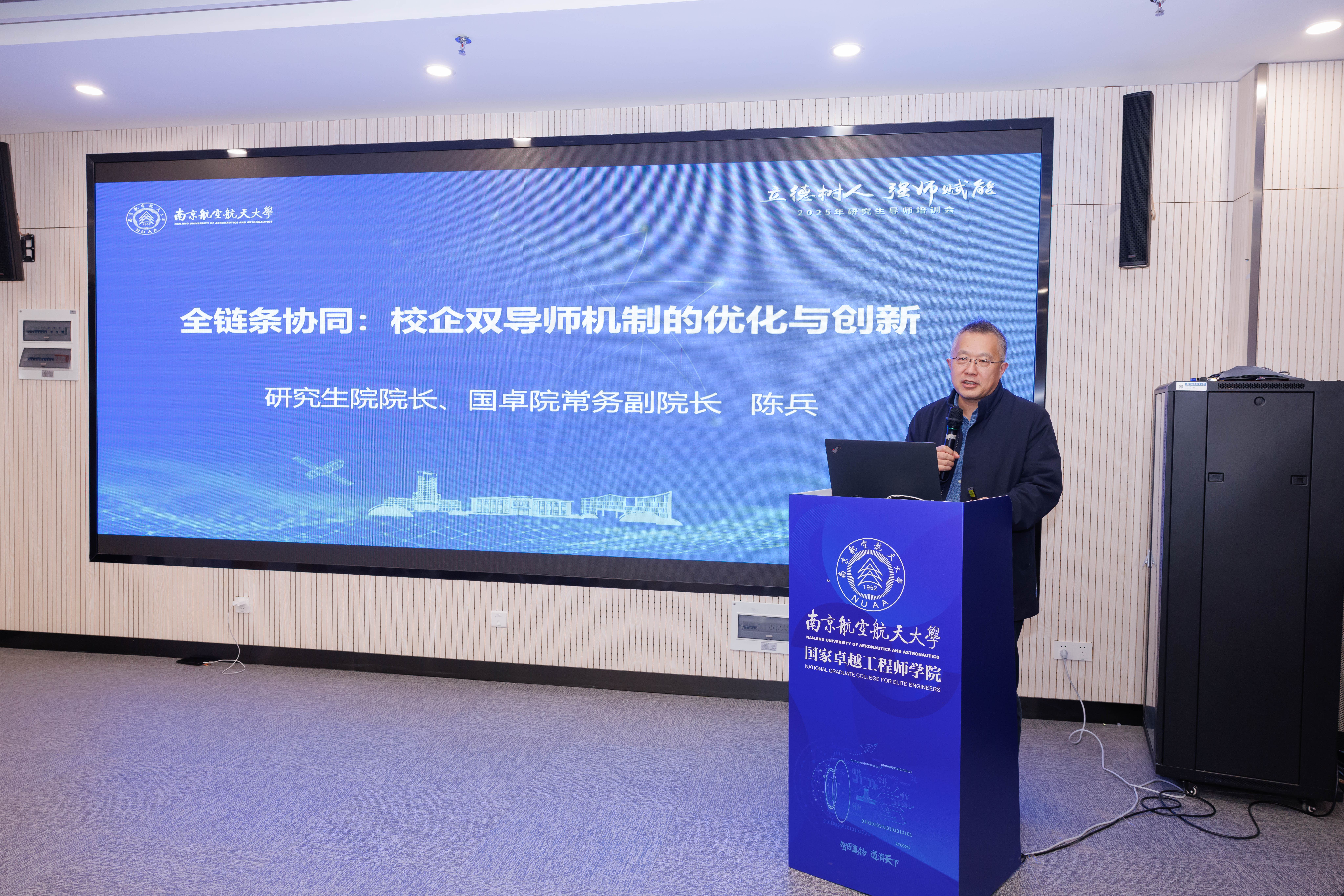 陈兵以“全链条协同:校企双导师机制的优化与创新”为题作专题报告,围绕“生源入口关、培养主阵地、学位质量基、就业快车道、育人共同体”五个方面,详细介绍了南航国卓院在体制机制改革、校企协同育人等方面取得的进展,为构建中国特色、世界水平的卓越工程师培养体系提供可复制的“南航样本”。