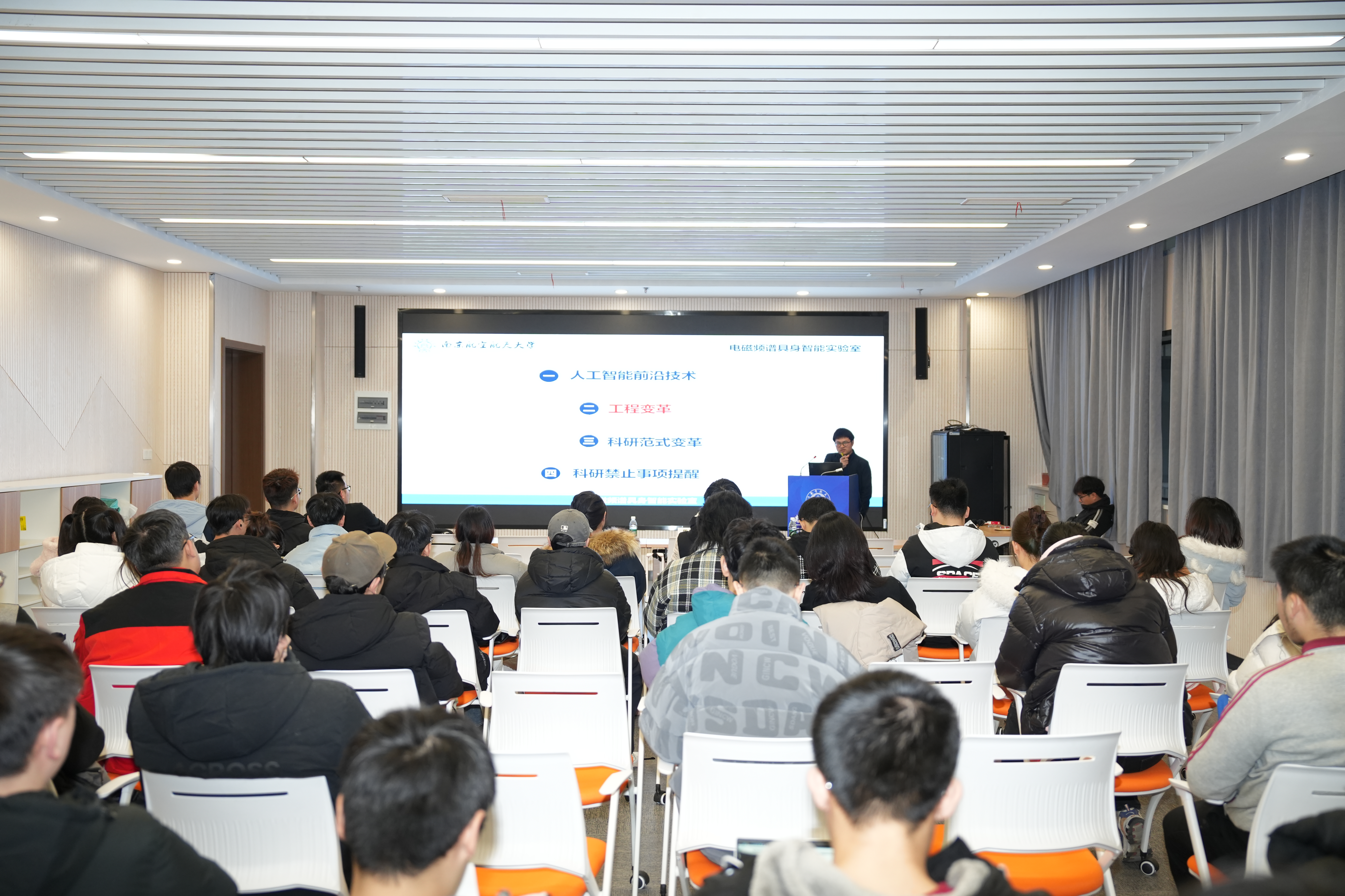 分享尾声,周福辉结合国内外典型案例,强调了在科研与工程中规范使用人工智能的重要性。他围绕数据伪造、学术不端、伦理安全等潜在风险,细致讲述了风险防范路径,引导同学们建立负责任、可追溯、符合诚信规范的AI使用意识,在追求科研创新的同时,必须坚守学术底线。